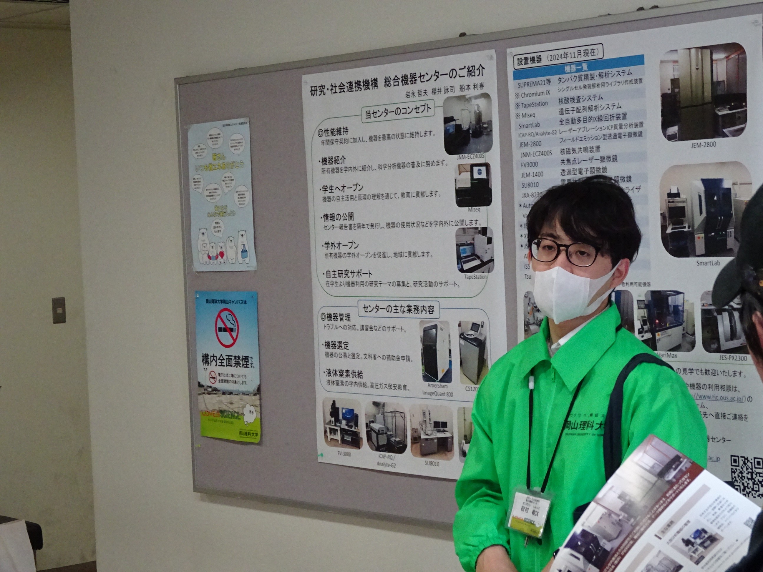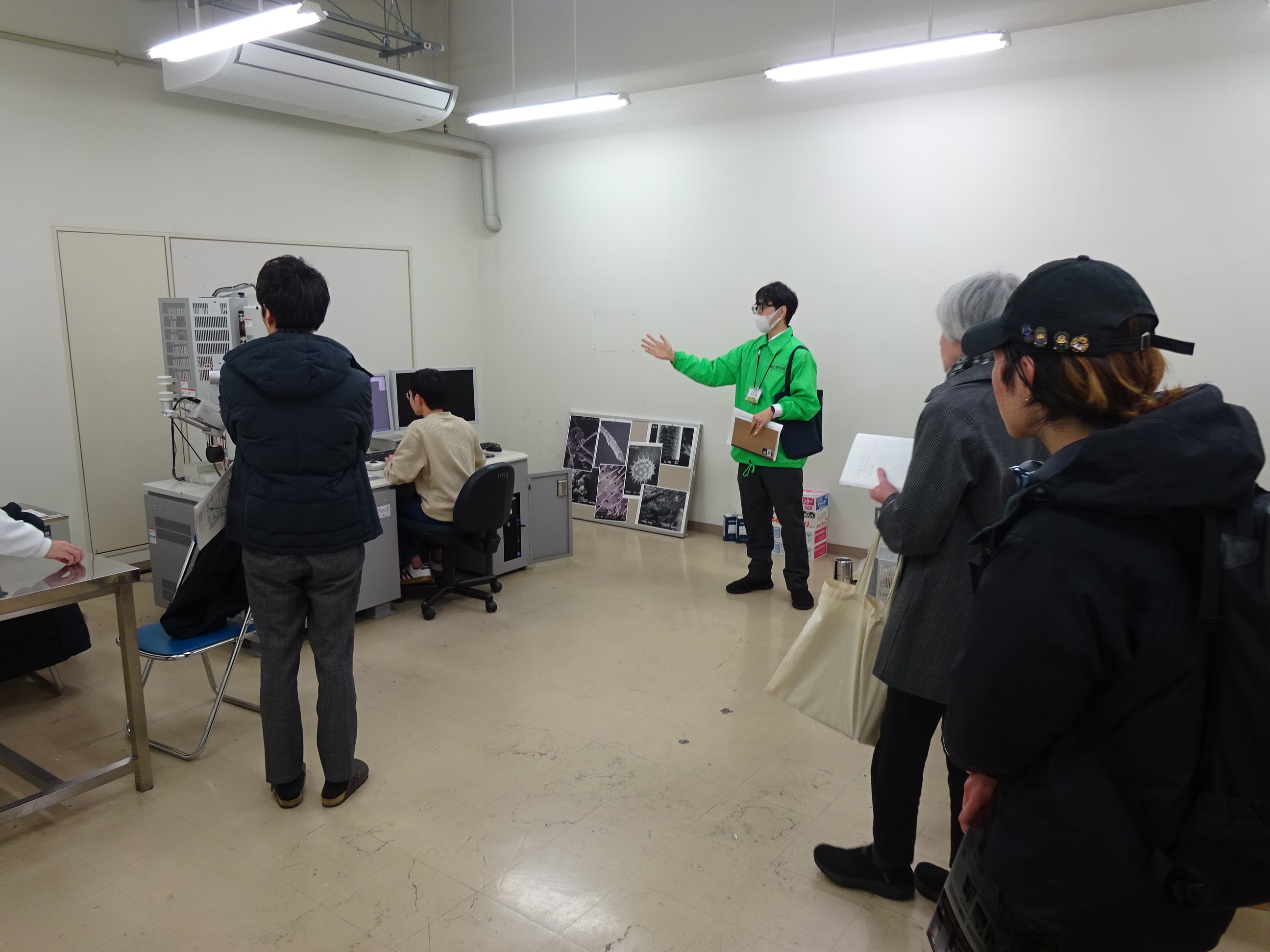 まずは総合機器センター事務室前で開会の挨拶とセンターの説明を行いました。その後に、当センターの技術員がセンター保有機器の解説をしながら、機器を見て周りました。